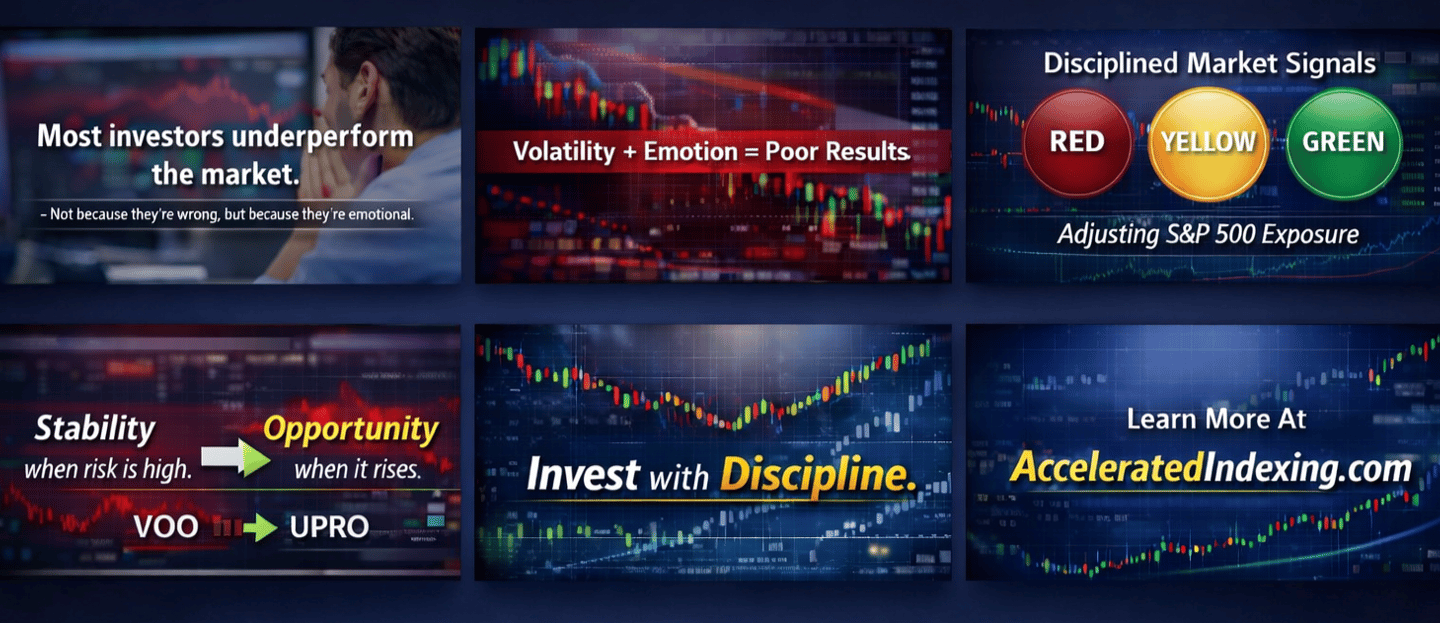 Please note that for retail investors low cost S&P 500 ETFs like VOO/IVV/SPY are best investment choices. Problem is that retail investors do not have enough exposure to S&P 500 when they are young and have years ahead for compounding growth. AAPIS™ aims to solve this problem by providing periodic acceleration and increased exposure whenever its appropriate to boost equity ownership and speed up your CAGR.