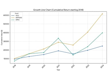 Final portfolio value after growth (2018-2024), starting with $10,000 initial investment: